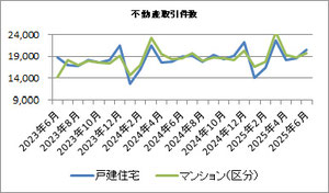 6月分の取引件数は、戸建住宅が対前年同月比9.1%増、マンション(区分)は同5.7%増となった。