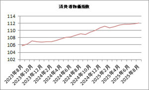 総合指数は112.1、前年同月比は2.7%の上昇、前月比は0.1%の上昇。