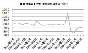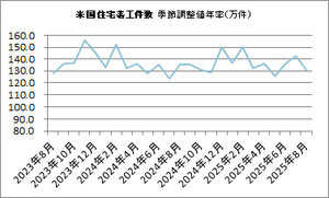 8月の米国民間住宅着工件数は年率換算130.7万戸で、前月改定値より8.5%減少し、前年同月比では6.0%減少した。