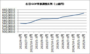 2025年4-6月期のGDP成長率(季節調整済前期比)は、2次速報値において、実質は0.5%(年率2.2%)、名目1.6%(年率6.6%)で、実質、名目とも1次速報値から上方改定となった。