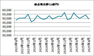 8月の商品販売額は49兆4110億円、前年同月比で1.8%の減少となった。